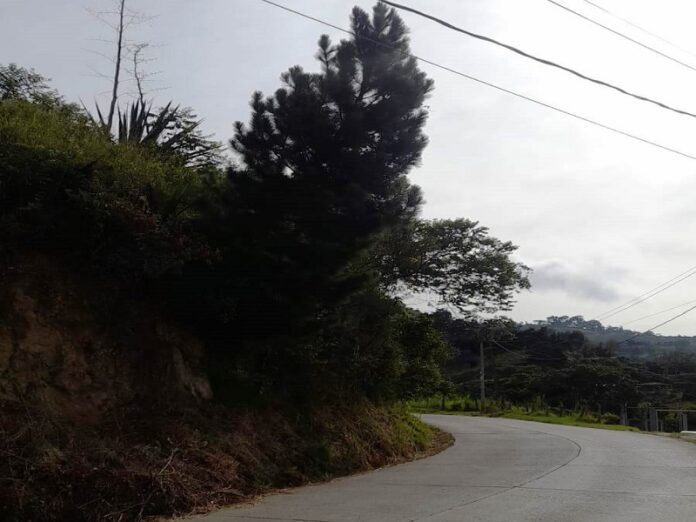 Un pino que había crecido sobre un barranco en la vía Santa Inés-La Cumbre tuvo que ser talado por unidades del Cuerpo de Bomberos de Yumbo, en la mañana de este sábado 1 de julio.