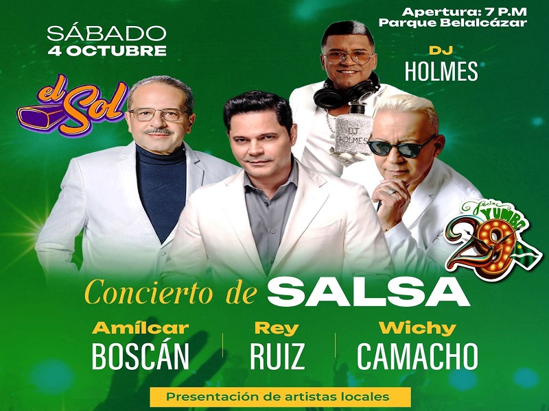 - Sábado 4 de octubre: Llega el esperado Súper Concierto de la Salsa, con Rey Ruiz, Amílcar Boscán, Wichy Camacho y DJ Holmes.