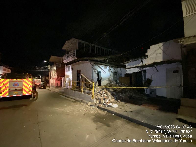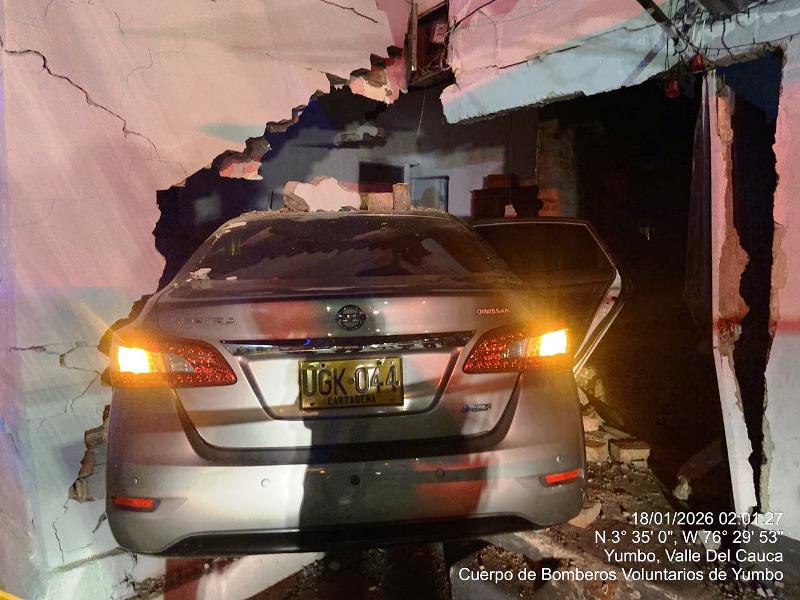 Según reporte oficial del Cuerpo de Bomberos de Yumbo, unidades bomberiles acudieron a atender un llamado de la comunidad a la Carrera 5ª N° 2-18, donde el vehículo Nissan con placa UGK 044 chocó y afectó la estructura de la vivienda y su vecina de nomenclatura 2-12, con alto riesgo de colapso.