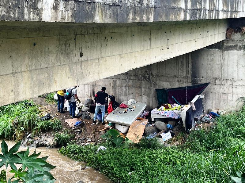 En la mañana de este viernes 27 de abril, personal de la Secretaría de Gobierno Municipal con el apoyo de unidades policiales procedieron a desalojar el espacio público invadido. Esta acción no solo beneficia a los usuarios del puente, sino también a las personas que estaban morando en el lugar quienes corrían el riesgo de perder la vida ante una creciente súbita del río Yumbo.